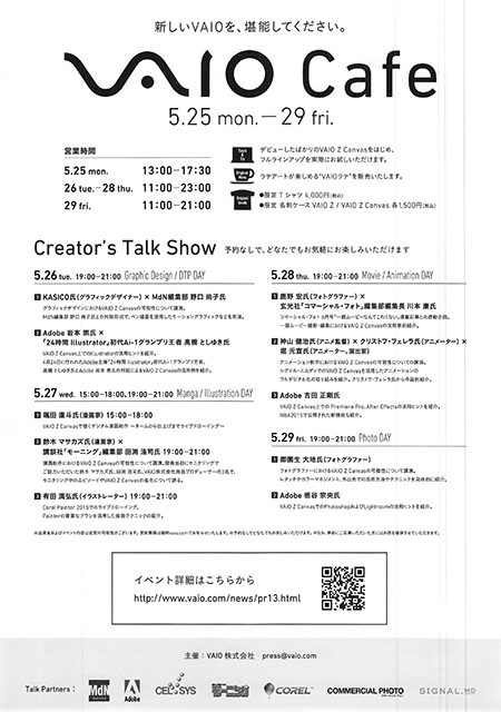 25日発表の VAIO Pro 13 | mk2 他、VAIO Z Canvasなど、VAIOのフルラインナップにタッチ&トライできるカフェです。