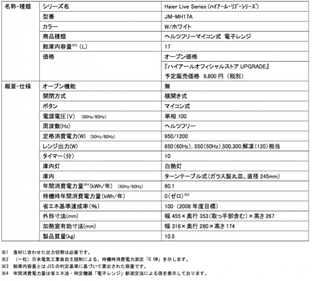 #ハイアール#調理家電#電子レンジ#リブ・シリーズ#JM-MH17A