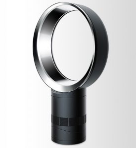 ダイソンの扇風機、エアーマルチプライヤーは、外に見える羽根を持ちません。しかも台部に、モーターがあります。すごく低重心。このため、倒れません。安全です。