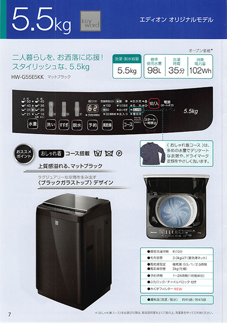 ちなみに、この5.5kgの縦型洗濯機、特殊な性能は全くありません。が、基本性能はしっかりしており、「化繊」「木綿」を洗う分には、全く問題ありません。また、「おしゃれ着コース」もありますし、チャイルドロック、糸くずフィルターも付いています。十分と言えば十分な機能です。