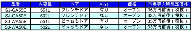 今回の『SJ-GA』もしくは『GA』シリーズは、幅:68.5cmで、電動フレンチドア、プラズマクラスター、COCORO KITCHIN(ココロキッチン。シャープの台所家電のAIoTサービスの総称)が共通項となります。