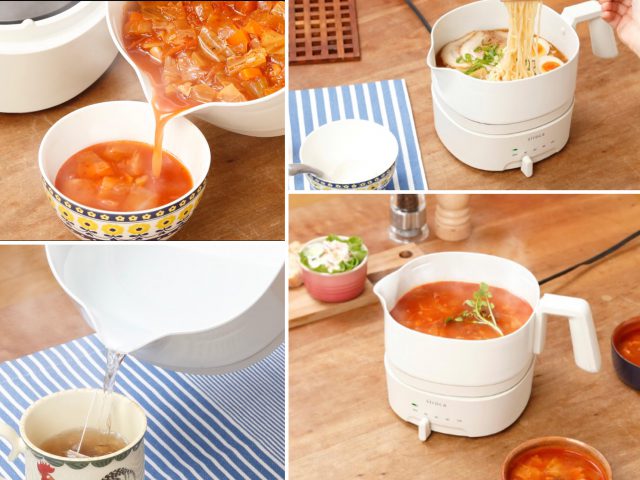 ■シロカのおりょうりケトル ちょいなべ 特徴 ●飲み物もお料理もこれ1台。 おりょうりケトルが1台あれば、料理もケトル感覚でさっと作れす。