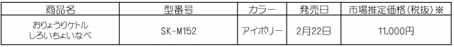 シロカ(株)から、好評の「おりょうりケトル ちょいなべ」の新色、「おりょうりケトル しろいちょいなべ」が2020年2月22日より発売されます。