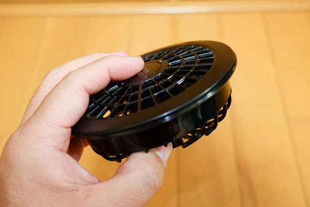 ファンは、外ではなく、内に凸するように設定する。見た目よくすることも理由の一つですが、もう一つ、風を送る通路の確保もあると思います。空調服は風が通ってナンボの家電ですからね。