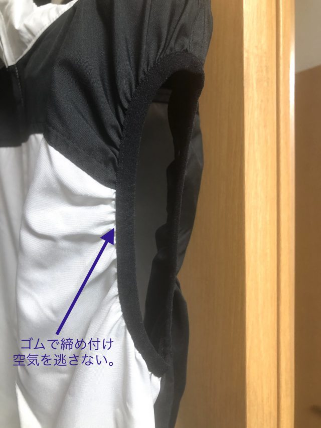 というのは、ベストは、袖側に空気が流れないように、袖部分をゴムで潰してあります。つまり脇が見事にフィットするのです。先にも書きましたが、脇は涼しくすべきポイント。そこを、キューと絞られているのですから、気持ちのいいものではありません。