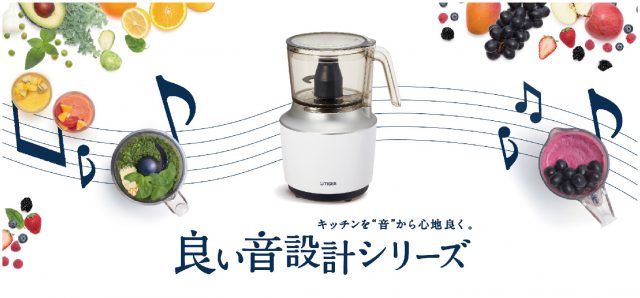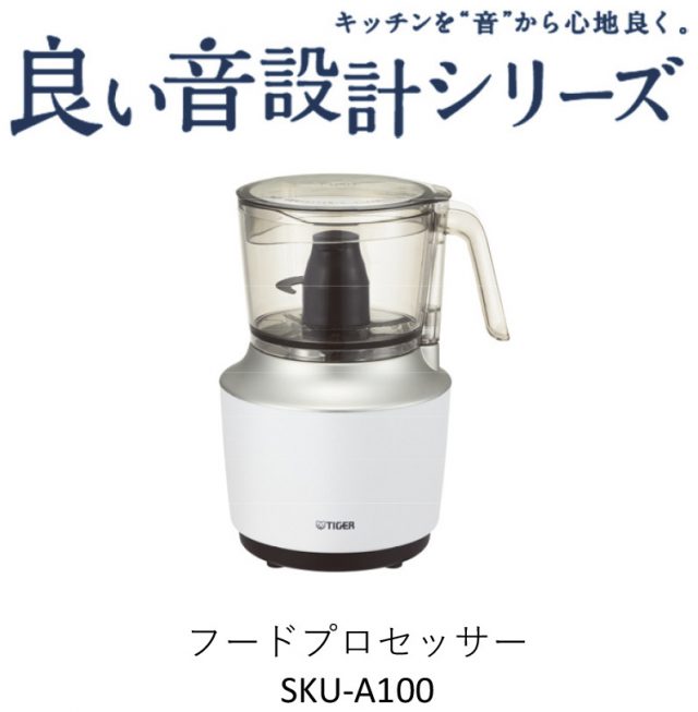 タイガー魔法瓶(株)から、心地良い音と使いやすさを実現した「良い音設計シリーズ」の中の一機種として新たにフードプロセッサー『SKU-A100』が、発売されました。