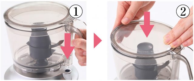 カップのふたを上から押している間だけ作動するから、粗みじんもペーストも思い通りに調理できます。