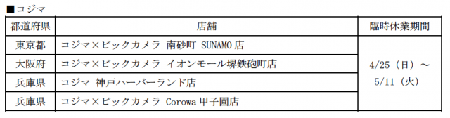 #ビックカメラ #コジマ #ソフマップ #臨時休業 #緊急事態宣言 #生活家電.com