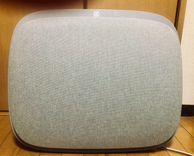 「Well A7」のデザインは、横長の「クッション」という感じの極めてソフトなデザイン。ソファーの横が似合うデザインです。オブジェのような強い存在感はなく、その場に「溶け込む」感じです。別の言い方をすると「ハード感のない、柔らかな感触の家電」と言えるでしょう。普通の家電と全く違う感じです。