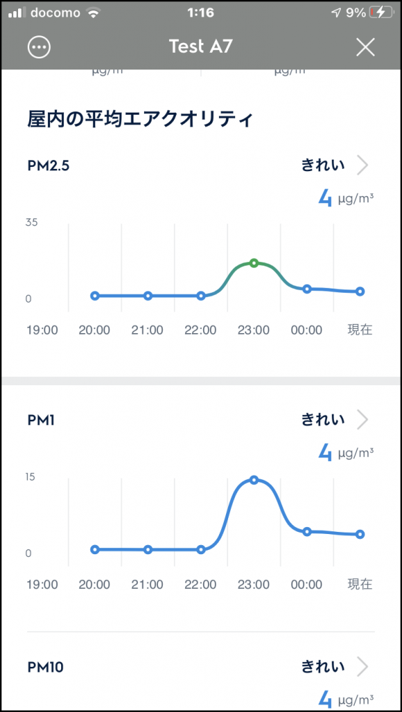 こうでない場合は、とにかく空気清浄機を信じるしかありません。しかし空気清浄機が対応してくれるのは、上のデーターでいうと「PM2.5」「PM1」「PM10」「TVOC(総揮発性有機化合物)」のみ。「eCO2(推定 二酸化炭素量)」「湿度」「温度」には対応できないので、情報は不要と考える人もいられるかも知れませんが、私はあった方がベターだと思います。