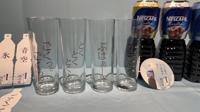 で、会場で見つけたのがアイスコーヒーを出す、オノマトペ・コップ。