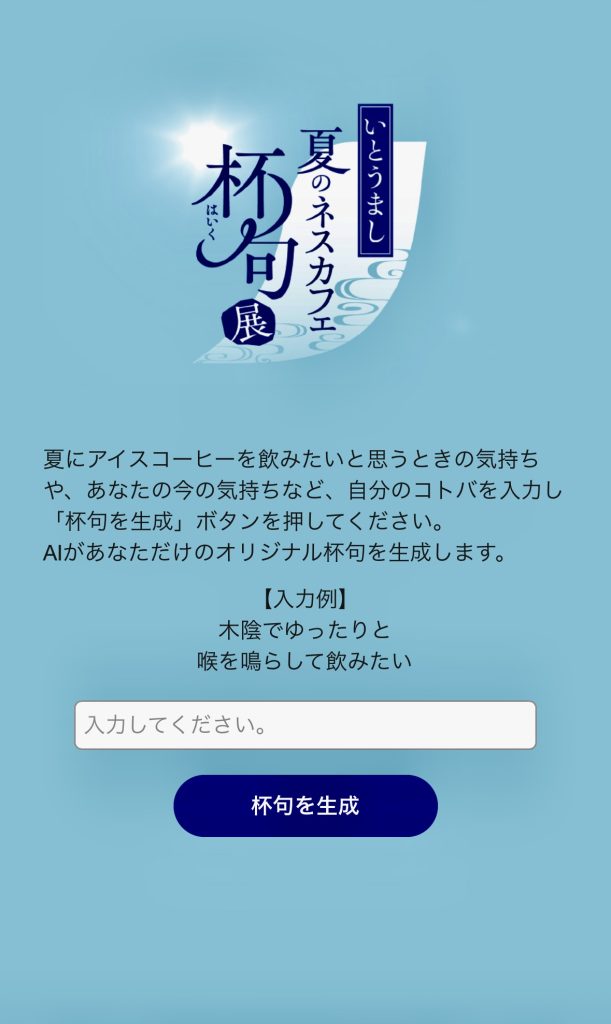 この俳句を、今や夏の定番ドリンク「アイスコーヒー」と合体させ、ついでにキャンペーンを張れないかと考えたのが、ねネスレ。ただし俳句改め「杯句」としてある。