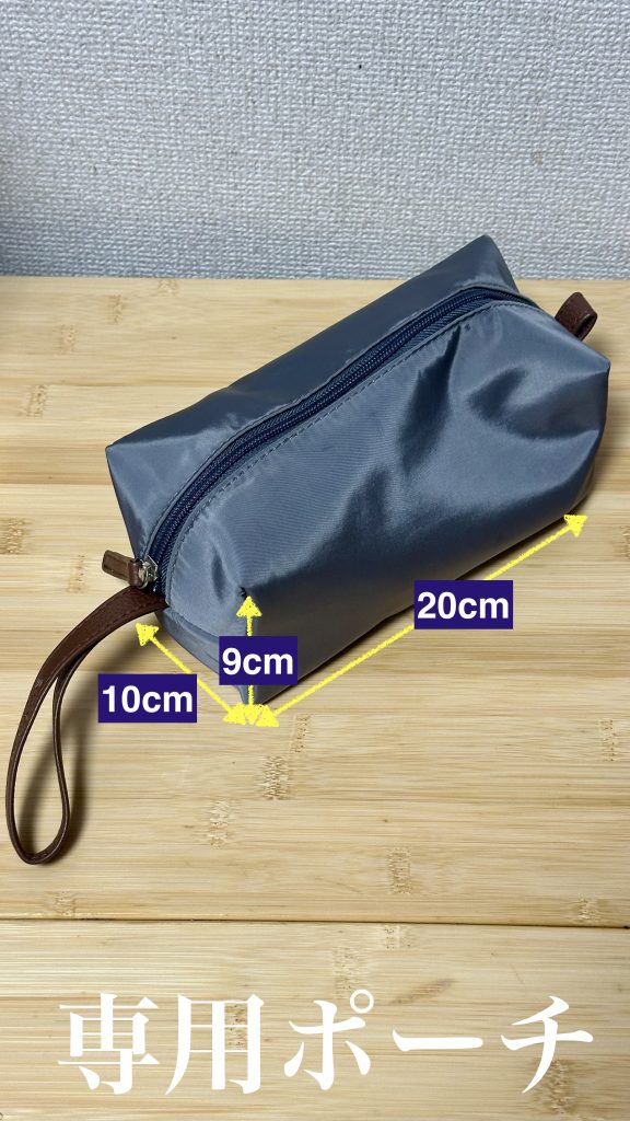 色を排除した金属を思わせる、道具に徹したデザインです。色を排除したと書きましたが、実物は淡い紫の色味が感じられ、すごぶる上品。また付属のポーチなどは、質が良くないというのが相場ですが、ポケットはかなりいい。