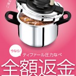 ティファールの圧力なべをご購入いただいた方を対象に、ご使用後に万一ご満足いただけなかった場合、ご購入代金を全額返金するティーファール圧力なべ「使ってなっとく!キャンペーン」が実施されます。 (さらに…)